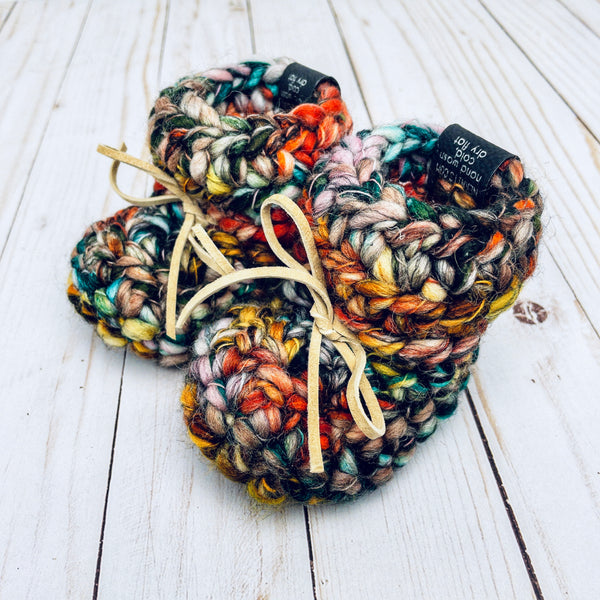 Made from Virgin Merino wool & Polyacrylic blend, super soft genuine leather soles & soft leather laces, these sweet little gender-neutral booties will keep your little one's toes toasty & ready to go! These make a wonderful baby shower gift & are often kept as heirloom pieces.