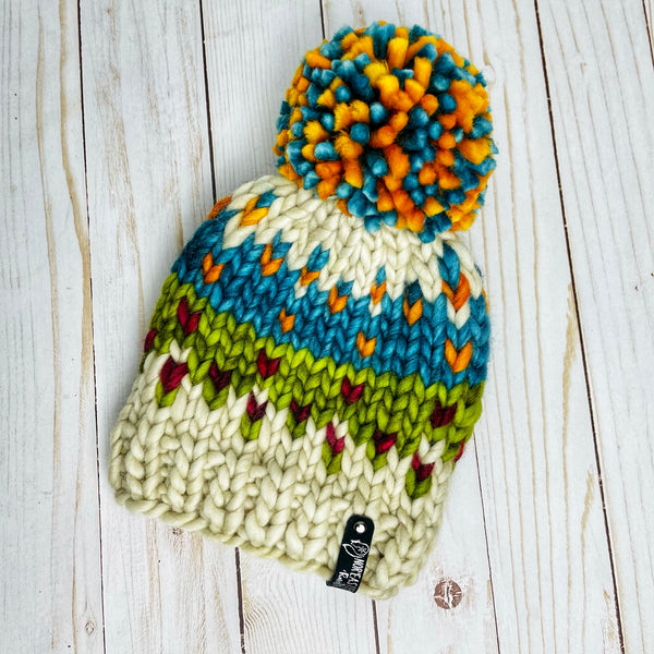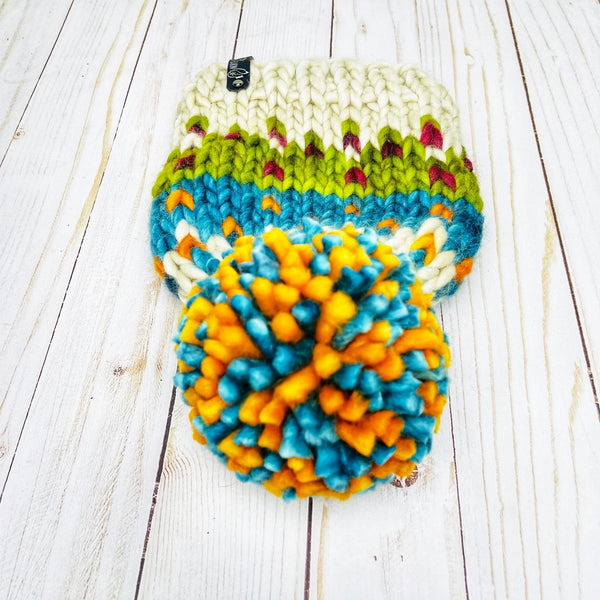 Yarn: Ethically sourced 100% Merino wool; handmade yarn removable PomPom
