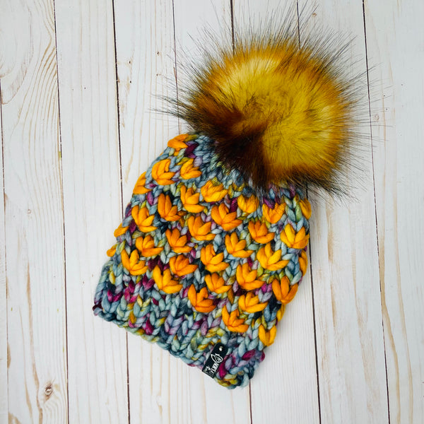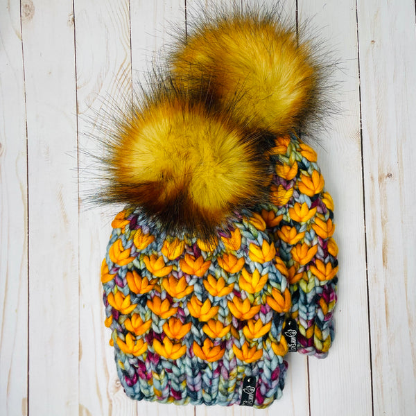Sunset Tundra Lotus Flower Beanie 100% Merino Wool