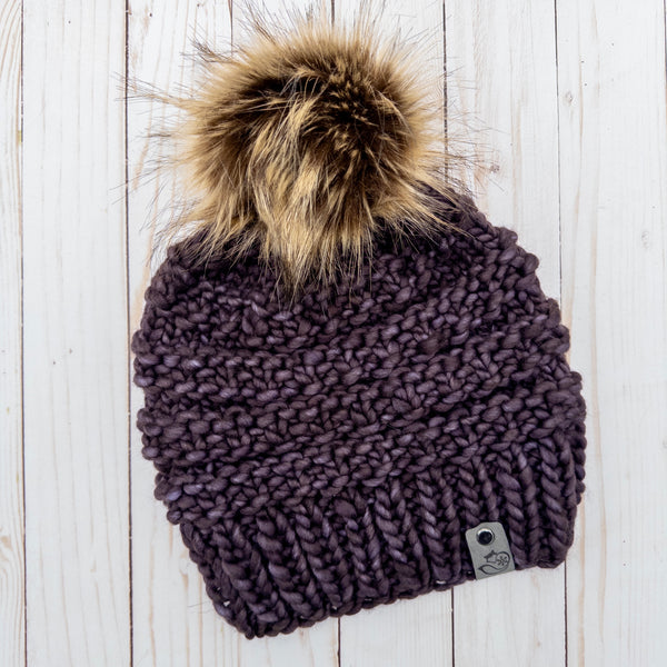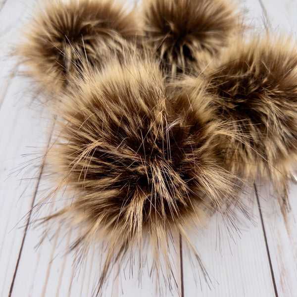 Add a Pom (pom pom, pouf or puff, if you please!) to any hat or beanie of any yarn weight! The Sahara Fox Lux Faux Fur Pom Pom has a dense pile featuring deep rich brown layers with light golden brown tips- a gorgous Pom Pom that compliments most any color hat it’s paired with!